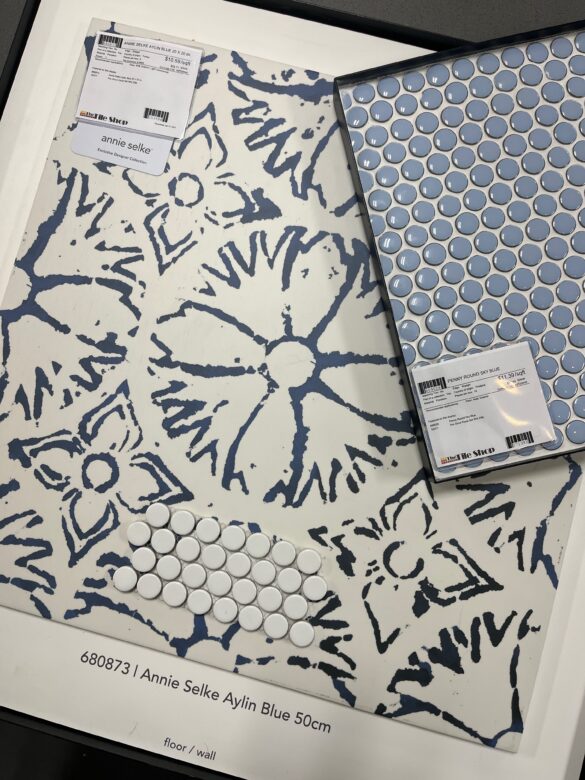 Floor tile. It is a small bathroom and these are big 20″ x 20″ tiles, but I thought they were so cute. It is hard to be sure if everything will come together looking at it in the store, so we’ll see!