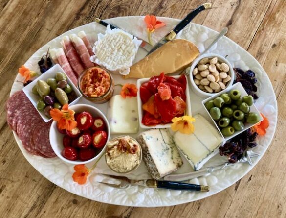 Actual hors d’ oeuvres on a serving table.